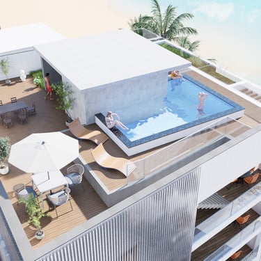 Die Apartments von Cabarete Lusso, vereinen modernes architektonisches Design mit hochwertigen Materialien, großzügigen Innen- und Außenbereichen sowie einem spektakulären Blick auf den Atlantik. Jedes Apartment wurde so gestaltet, dass es maximale Helligkeit, Privatsphäre und Komfort bietet – inklusive einer privaten Terrasse oder eines Balkons.
