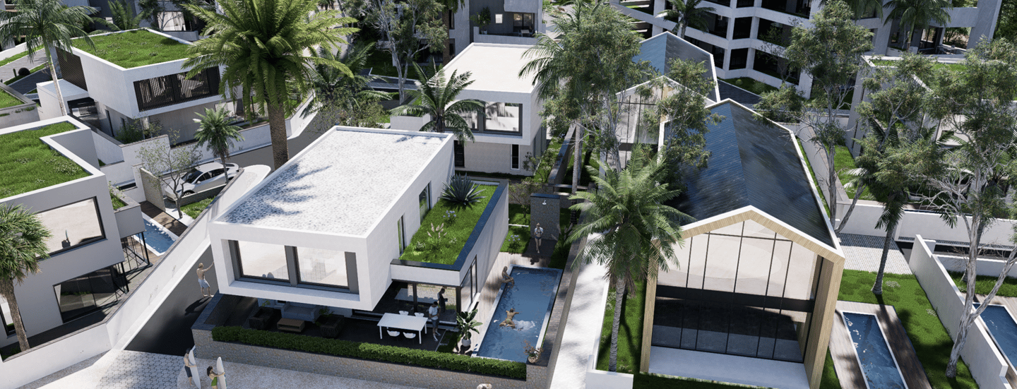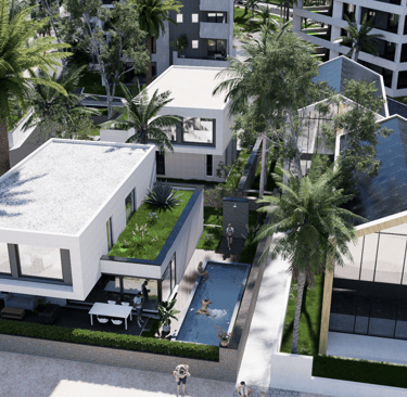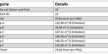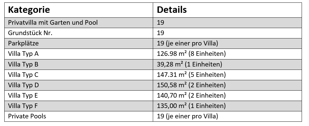 19 exklusive Villas hochwertiger Ausstattung mit Garten und Pool;
